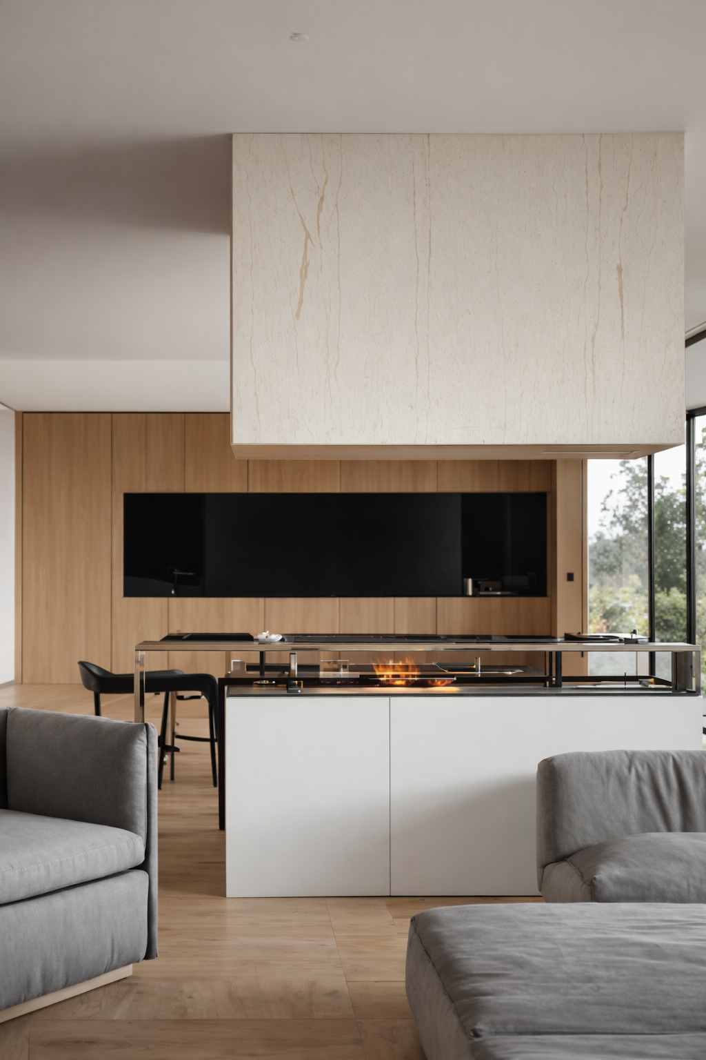 Architecture and interior design were developed simultaneously, allowing spaces and furniture to be designed as a single system. Large openings, open-plan layouts, and carefully selected materials frame uninterrupted valley views while maintaining a calm and refined atmosphere. The result is a residence that balances luxury, privacy, and landscape connection, where form, structure, and experience work together seamlessly.